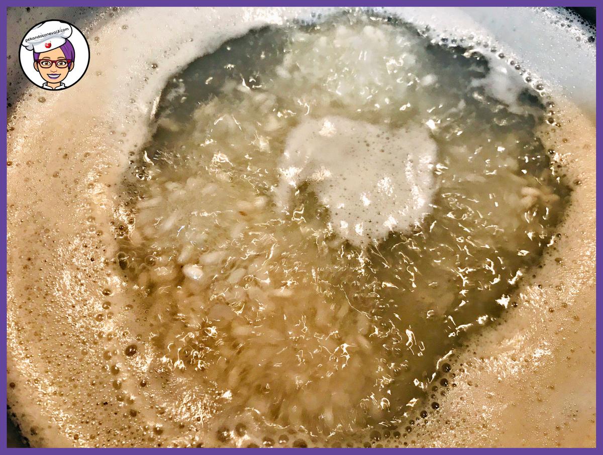 Ponemos el agua a hervir con una pizca de sal, cocemos el arroz de 15 a 20 min o lo que indique el paquete.