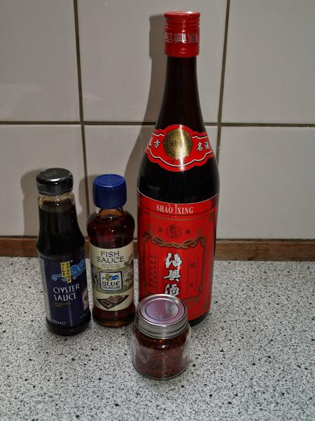 2 cucharaditas de vino chino (vino de arroz. Ojo, no es sake - licor o vino de arroz japonés)