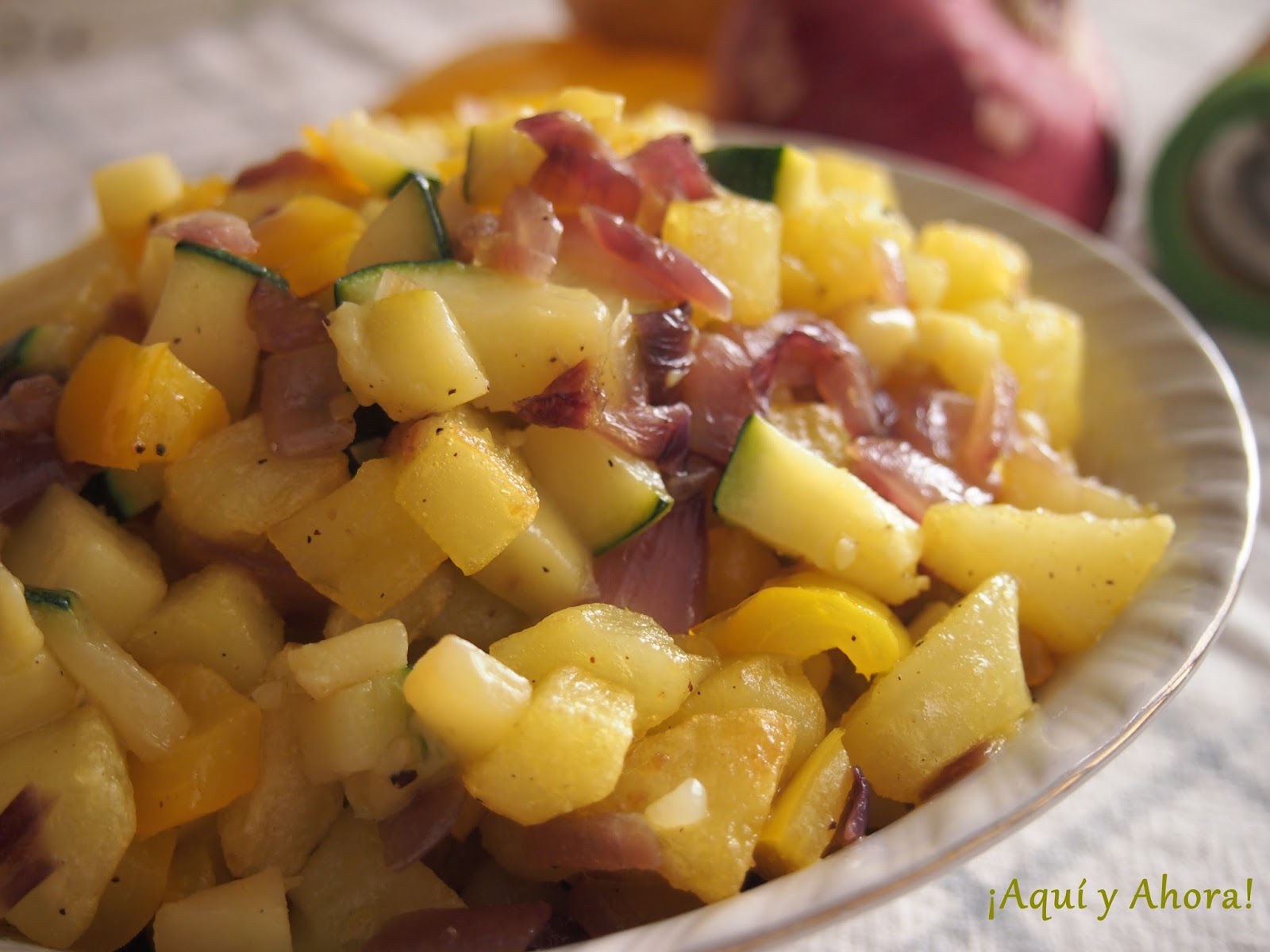Aveces cuando la imaginación o mi mente no da más de sí, no se me ocurre nada para acompañar tanto a la carne como al pescado y es que pasarte una semana entera cocinando las ideas van disminuyendo, pero esta vez observando las diversas verduras que veía en la nevera me vino a la mente un acompañamiento perfecto y muy facilón!!