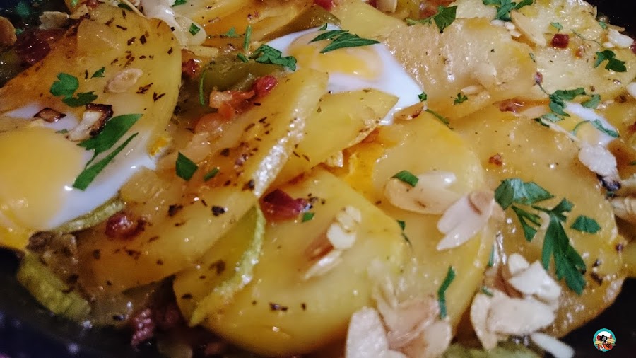 El consejo: Puedes cocinar este plato con; chorizo o becon. Añadir otras verduras que tengas en casa; pimiento rojo, berenjena, alcachofas o guisantes. Para que las patatas no se destrocen, en vez de remover con frecuencia para que no se pegue la comida, zarandea de vez en cuando la sartén o la cazuela.
