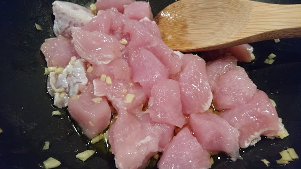 Añadimos los trozos de pavo y los doramos bien por todas sus caras.