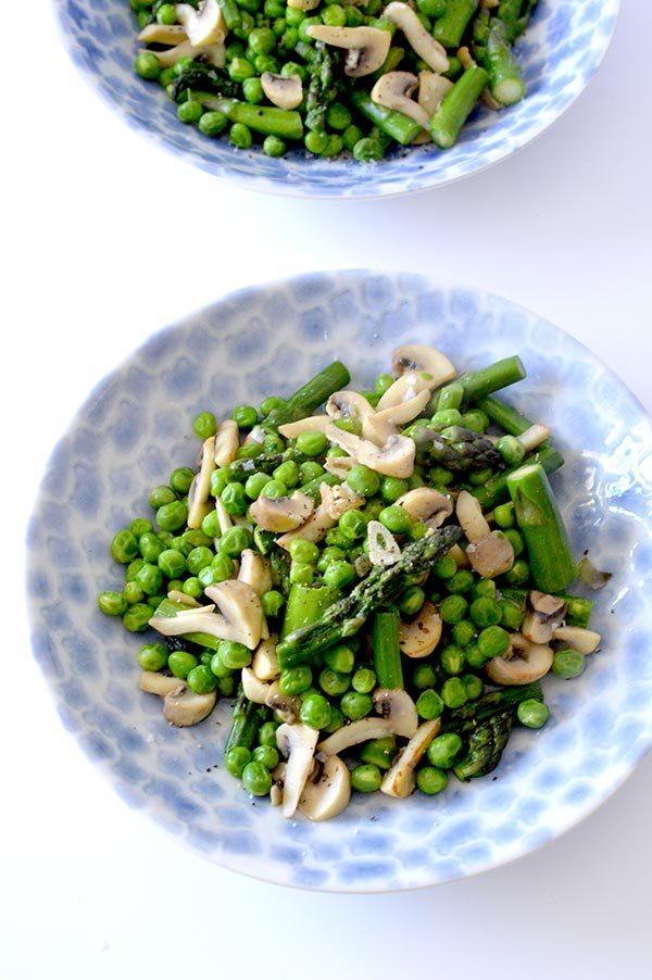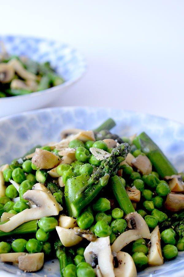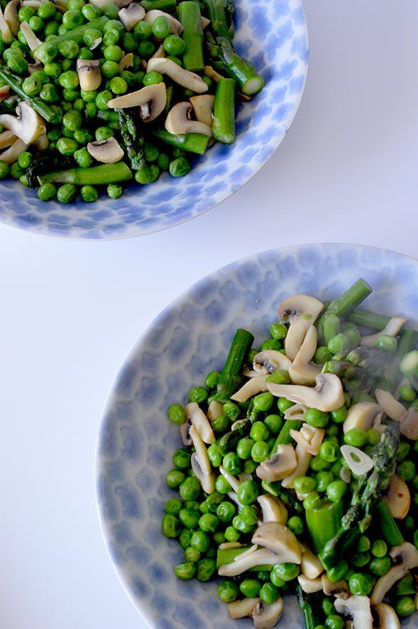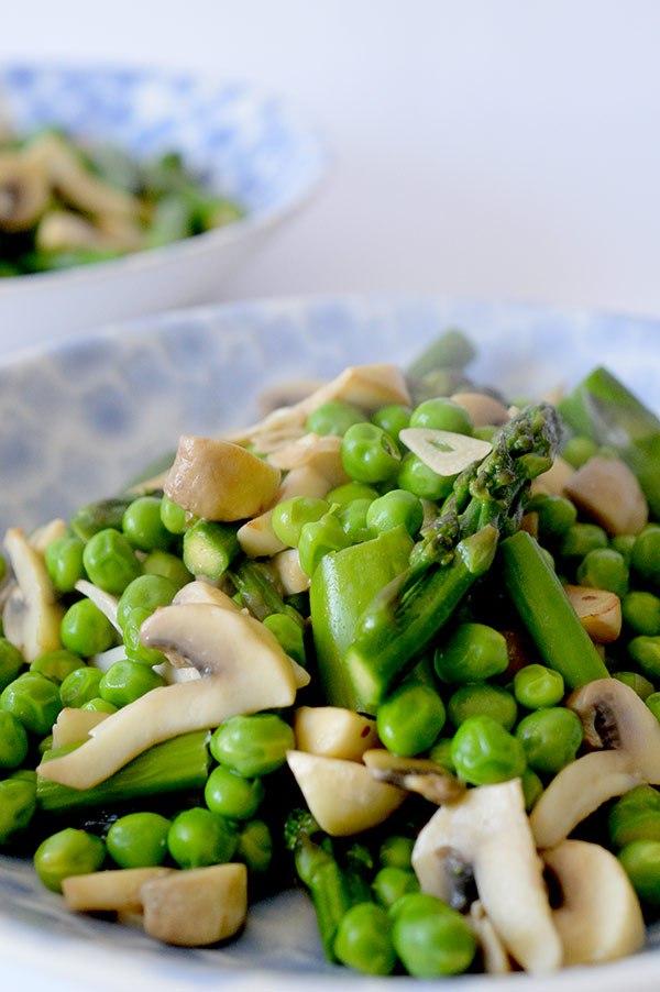 Este salteado podría perfectamente ser una receta express, ya que es muy rápido de preparar y no tiene mas de 5 ingredientes. Eso si los ingredientes son frescos , de temporada y de primerísima calidad!! y es que ahora los espárragos verdes están buenísimos al igual que los guisantes que siguen iluminando mis días para asombro de mi hermana y demás familia!