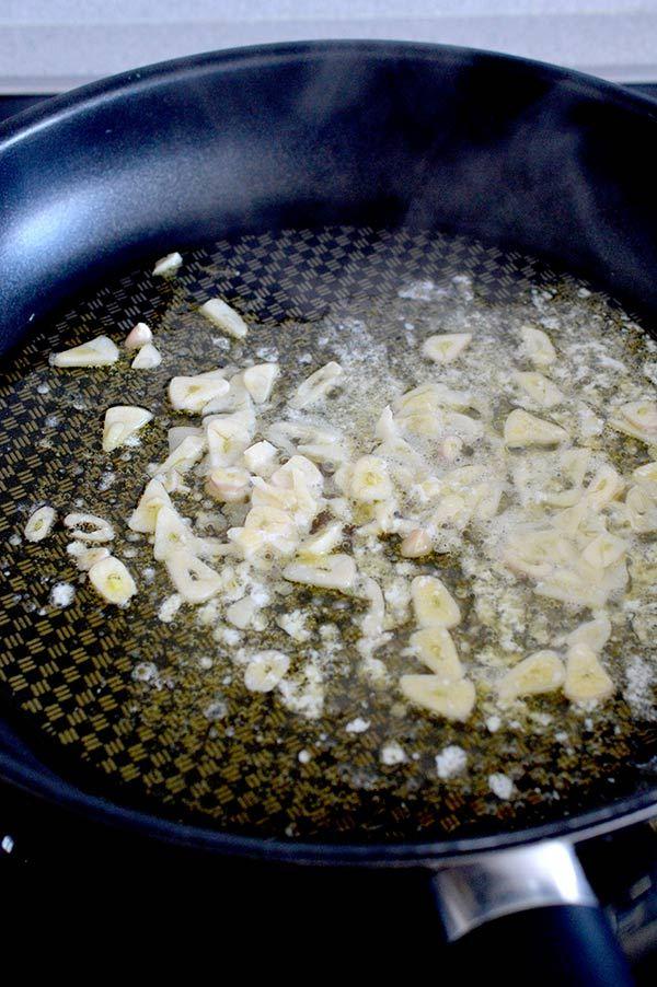 Los añadimos a la mantequilla y ajo, y sofreímos durante unos minutos.