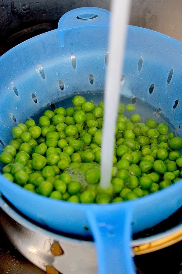 Los cocemos en abundante agua hirviendo durante 5 minutos. Y los colamos y ponemos debajo del chorro de agua fría para cortar la cocción.