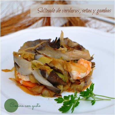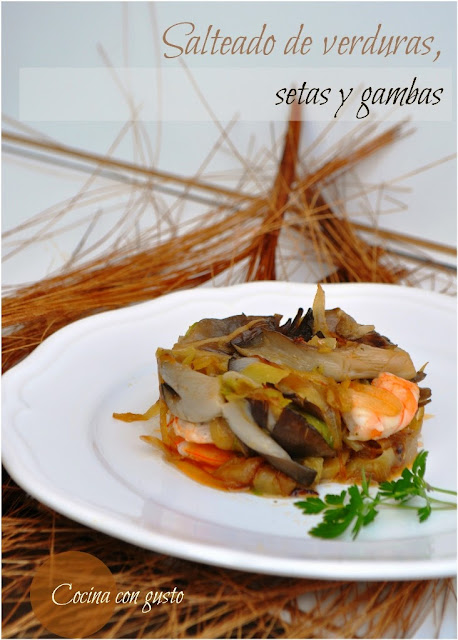 Tenía en mente desde hace tiempo hacer unos espaguetis de calabacín y también tenía en mente un salteado de setas y gambas y al final me decanté por hacer un mix con ambas recetas.