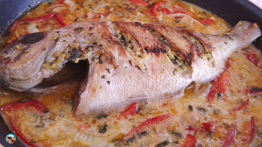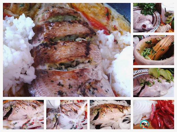 He variado un poco la receta, respetando los ingrediente principales. Me pidieron pescado a la dominicana, así que elegí una sama para ello. ( La receta original lleva; aceite de maíz o maní y achiote).