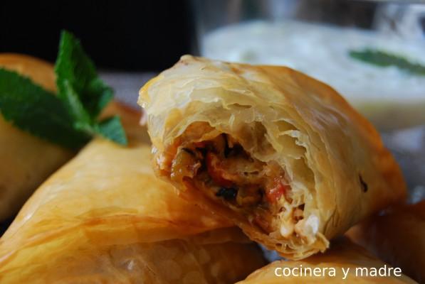 Cuando las samosas estén doradas sacamos del horno y dejamos que se atemperen; servimos con la salsa de yogur bien fría y a comer…!!!