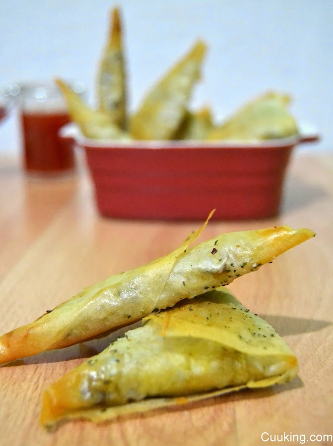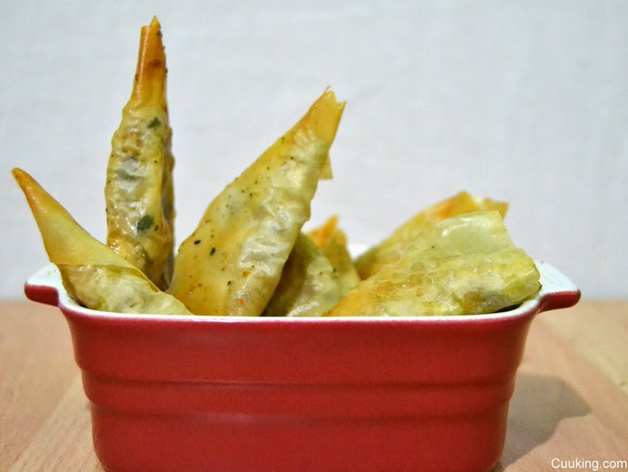 La masa ( o pasta) Philo se seca muy rápido por lo que os aconsejo que no la saquéis del envoltorio justo hasta el momento de usarla.