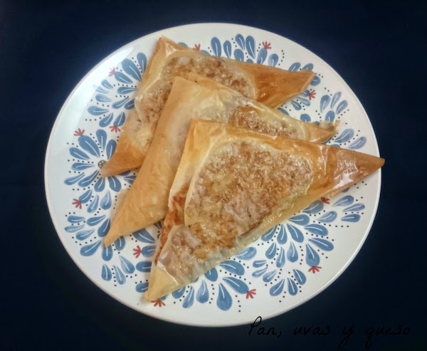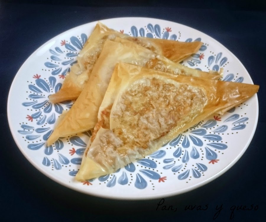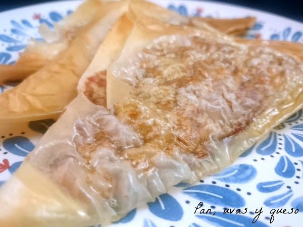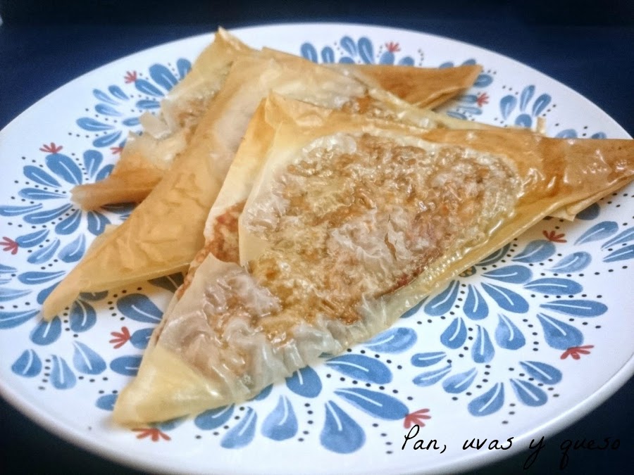 La pasta filo es una delicia pero la mayoría de las recetas que la utilizan dan mucho trabajo, así que es para pensárselo dos veces antes de utilizarla (tengo alma de vaga, ¡qué le vamos a hacer!). Hace tiempo ya había hecho con ella los banichki salados y los banichki rellenos de crema de chocolate.