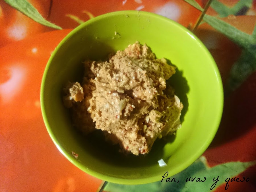 Para preparar el relleno picamos el bonito, los pimientos, los ajos y las nueces. Lo mezclamos todo en un bol y salpimentamos. Si tenemos Thermomix ponemos todo en el vaso y programamos 8 segundos a velocidad 4.