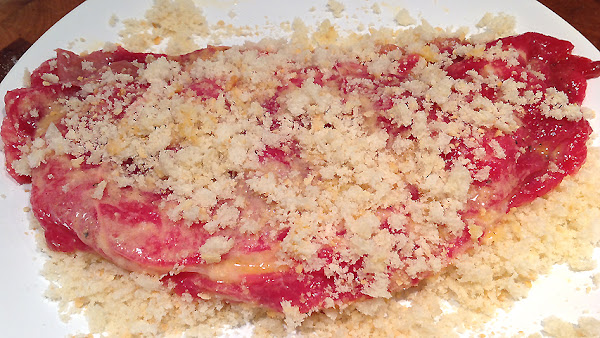 Este pan no se adhiere tanto a los filetes como el que sueles comprar pero esto se soluciona muy fácilmente. Solo tienes que presionar un poco con las manos.