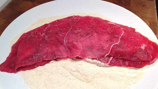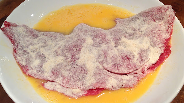 Prepara un plato o fuente con la harina, otro con los huevos batidos y otro con el pan rallado.