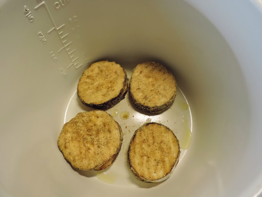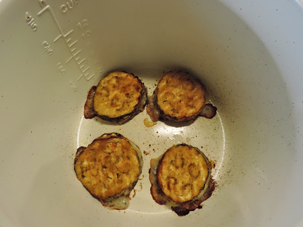 14 lonchas de pechuga de pavo del tamaño de las lonchas de berenjena.