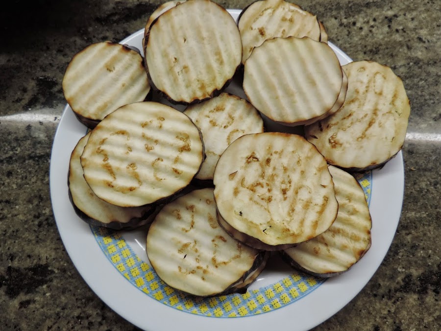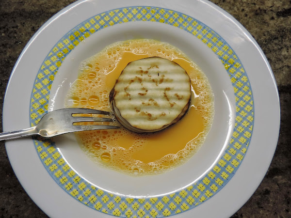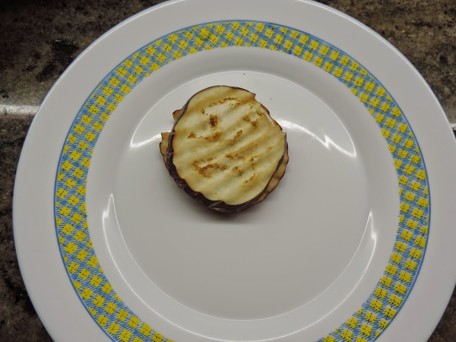 Poner encima 1 loncha de berenjena.