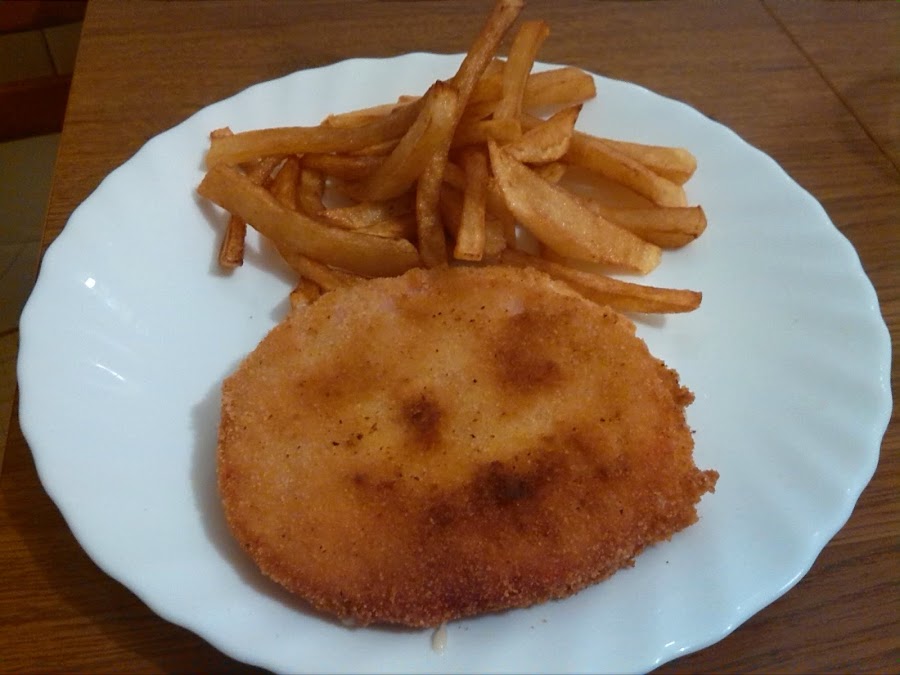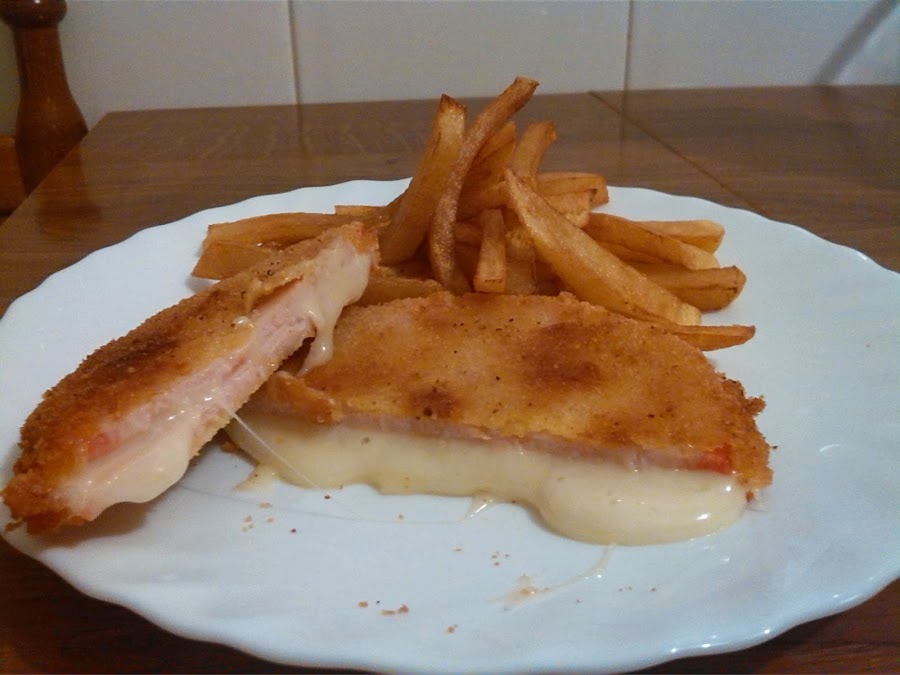 En primer lugar cogemos dos filetes de lomo y en el medio de ellos ponemos dos lonchas de queso. Los empanamos con harina, huevo y pan rallado (en ese orden). Una vez tengamos esto hecho los freímos en una sartén con aceite y cuando estén dorados los ponemos en papel absorbente para quitar el exceso de aceite. Emplatamos y a comer!!!!