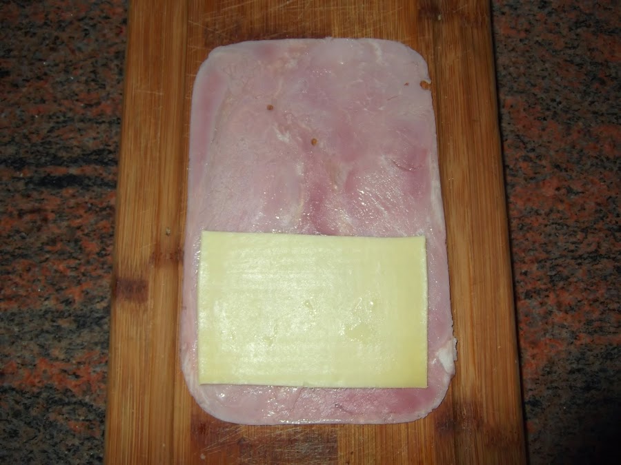 Lo primero es separar las lonchas de jamón york si son de las alargadas, simplemente tenéis que meter la loncha de queso entremedias del jamón, si es de las cuadradas tenéis que poner una loncha de jamón york, una de queso y otra de jamón york si tenéis miedo de que el San Jacobo se desarme lo mejor es ponerle unos palillos.