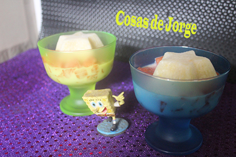 Repartimos los trocitos de sandía entre dos copas.