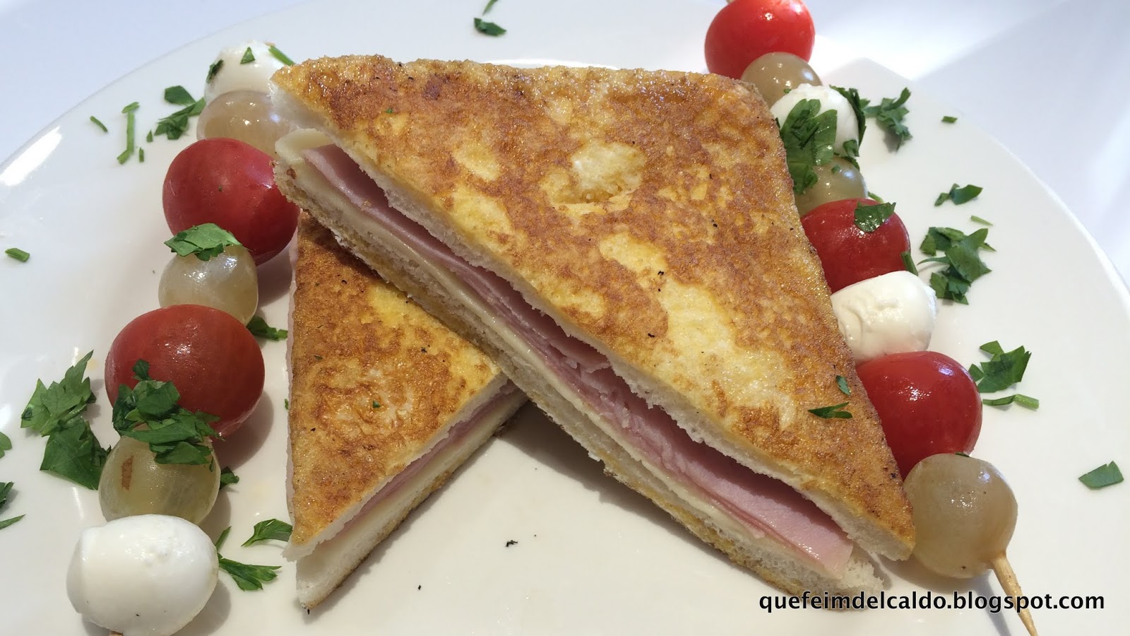 En la última cena que hicimos juntos me retó a hacer su receta estrella, yo cuando me lo dijo me esperaba que fuera algo tremendamente elaborado ya que él es de paladar fino y exquisito, pero va el tío y me suelta un sandwich de jamón york y queso pasado por huevo batido, ahí queda eso. Como es lógico mi respuesta fue: -¿Que no hay huevos??.