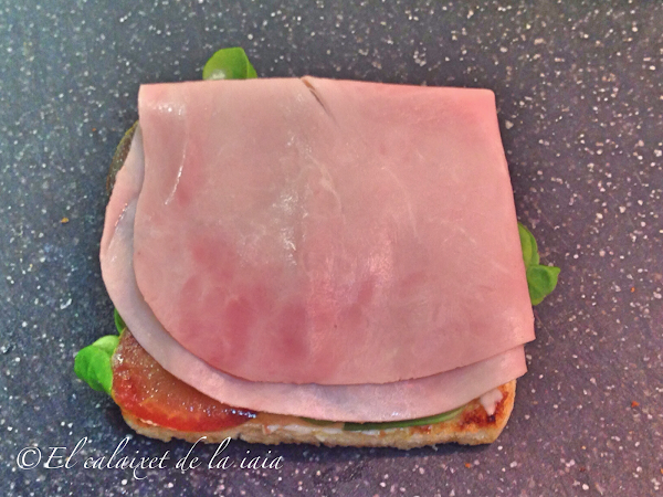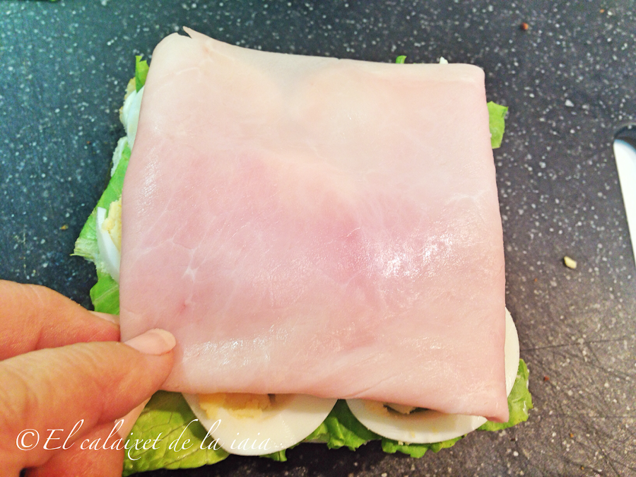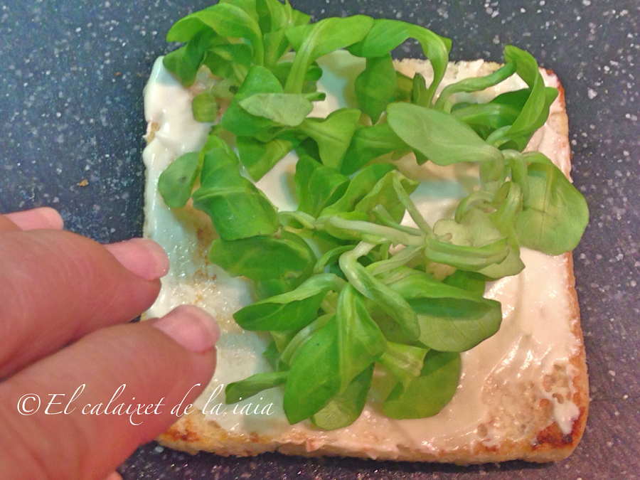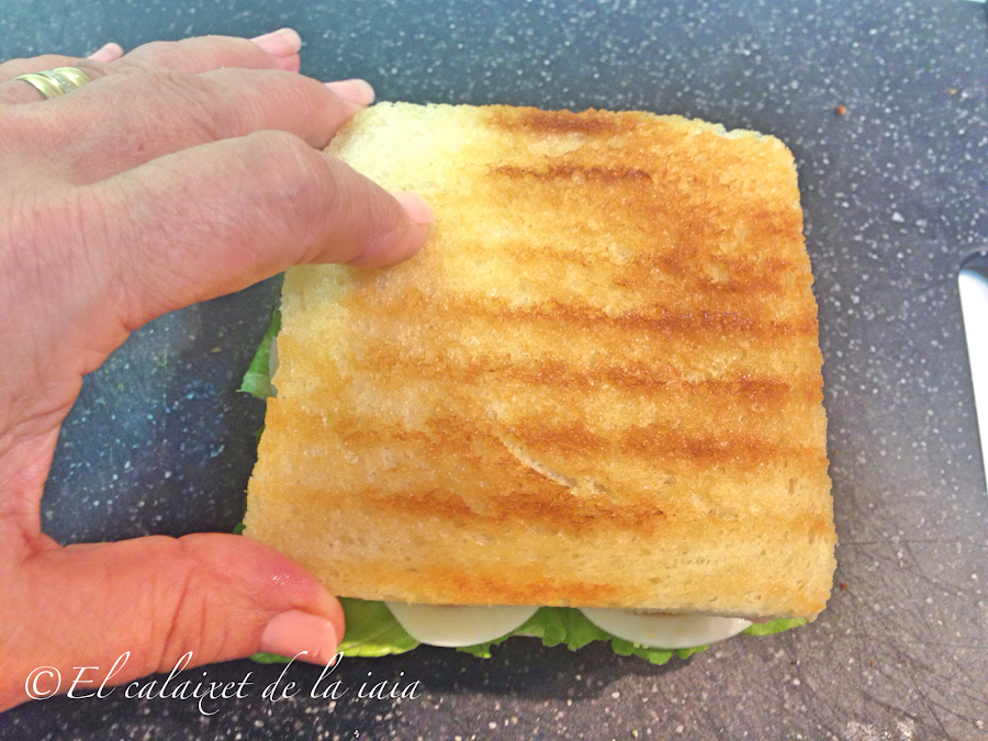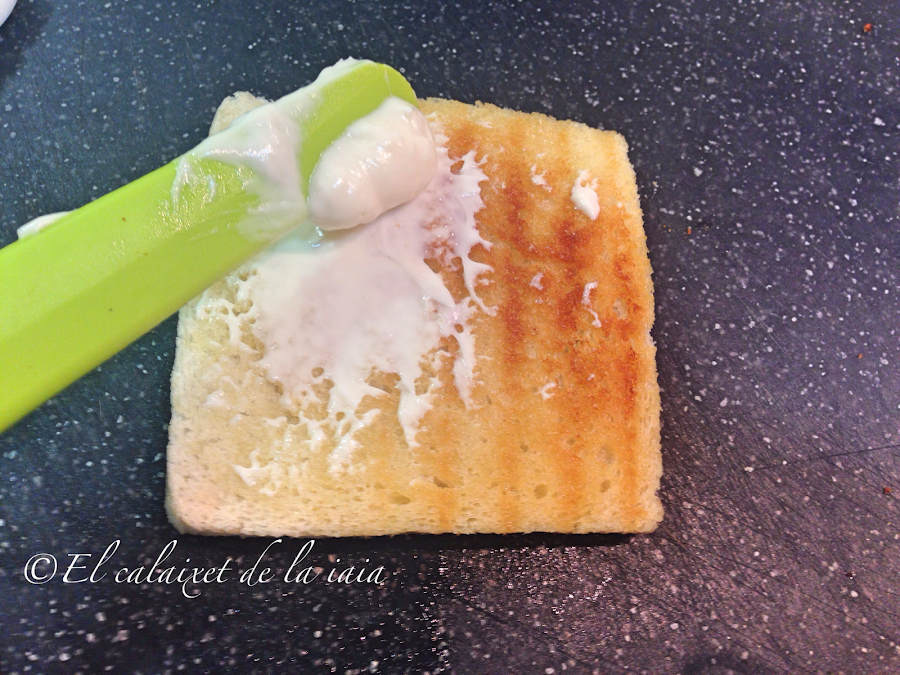 y lo cubrimos con otra tostada untada ligeramente con mayonesa