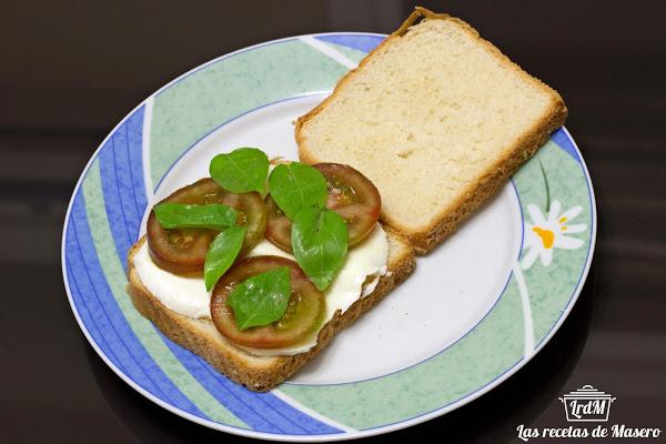 ¿Cómo estáis? Nosotros muy cansados ya que estuvimos el fin de semana en el pueblo, llegamos tarde y encima con el calor...pues peor aún. Precisamente para esos días en los que estamos cansados y no nos apetece perder mucho el tiempo en la cocina, tenemos una receta ideal, que además es ligerita cara a verano, como es este sándwich caprese. No perderéis más de 10 minutos en hacerlo y además está buenísimo.