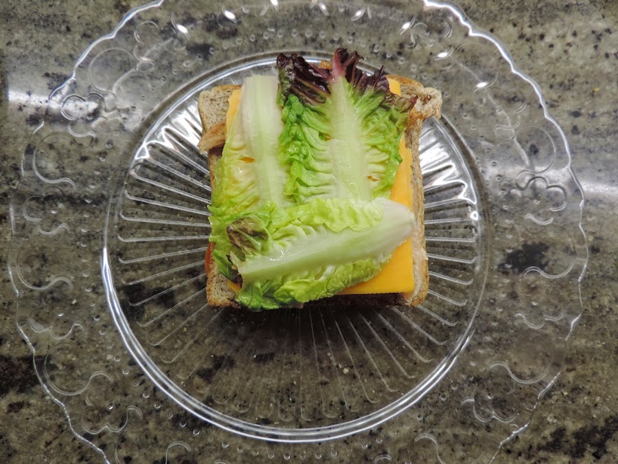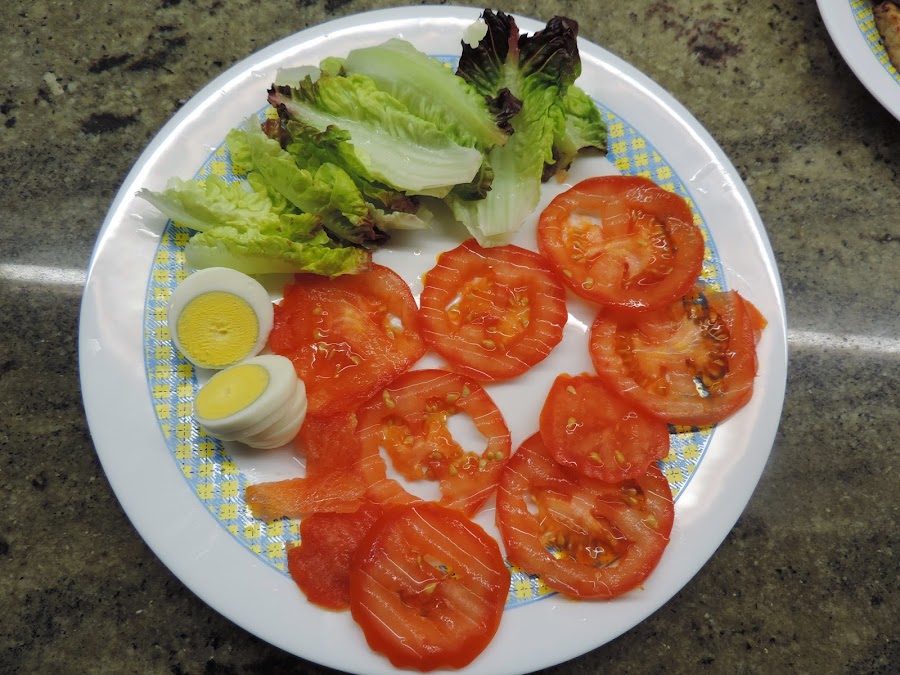 El tomate y el huevo cortado en rodajas y la lechuga.