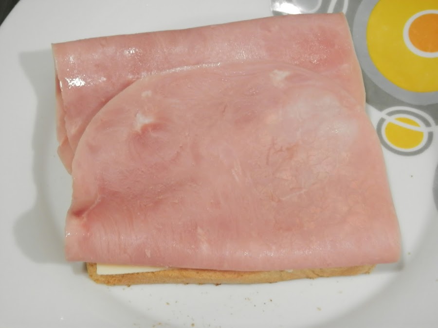 Encima los dos filetes de jamón york en cada uno de los sandwiches.