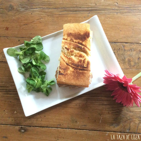 Se pone mantequilla por la parte exterior del pan para tostarlo en una sandwichera, de esas que aplastan el pan o en una grill al fuego y se le coloca un peso para que le dé la forma aplastada y plana.Terminado el lomo de cerdo y el bocadillo este fantástico. Oh my God!