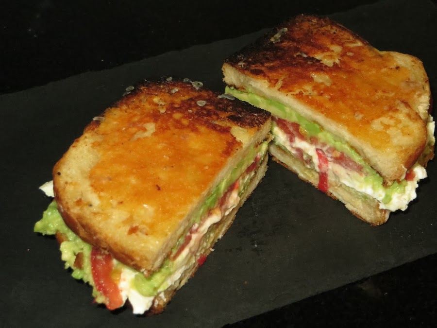 Cortamos el tomate y machacamos el aguacate con un poco de sal. Untar en ambas rebanadas del aguacate machado, añadirle el tomate y el queso fresco. Le añadimos un poco de pimienta y sal y un chorro de limón y listo para comer.