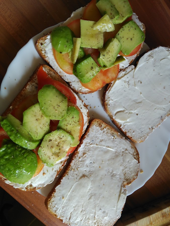 - Encima del tomate, colocamos el aguacate, también loncheado fino, y espolvoreamos orégano
