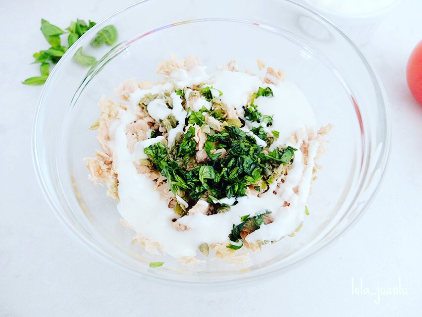 Añadimos la mayonesa, el perejil, las alcaparras y mezclamos.