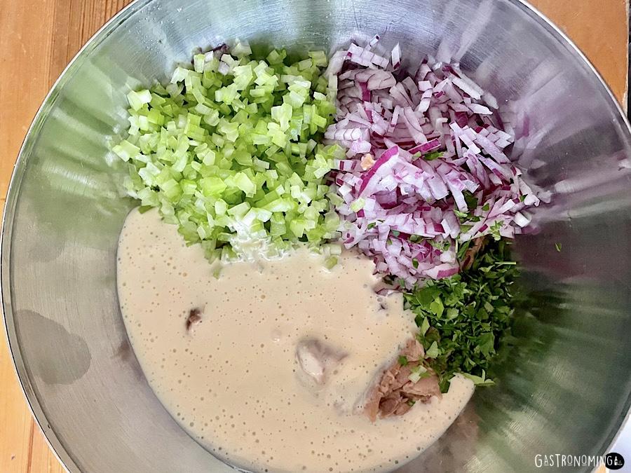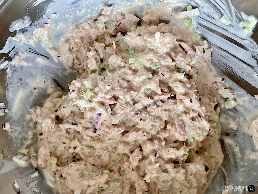 Si quieres usar mayonesa normal, nadie te lo impide, nosotros hicimos esta para aprovechar el aceite del atún enlatado y para darle un punto más de sabor, pero puedes hacer lo que prefieras.Las posibilidades que hay para hacer variantes a esta ensaladilla de atún pueden ser eternas, aquí te damos algunas ideas, como añadir anchoas picadas para potenciar el sabor de la mezcla, quizás usar unas pocas sardinas, arenques, melvas ahumadas en conserva o similares bien picaditas para el mismo efecto. Hay quienes acostumbran añadir olivas picadas o alcaparras, no es mi caso, Pepinillos en vinagre picaditos, ácidos o agridulces o un poco de sweet pickles relish, me gusta pero no en exceso, aporta mucho dulzor a mi parecer y además de la mayonesa, una cucharadita de mostaza Dijon, no lo hago porque me gusta hacer la mayonesa con una pizca de mostaza americana y no me gusta que le aporte mucho sabor ni le cambie el color a la salsa.