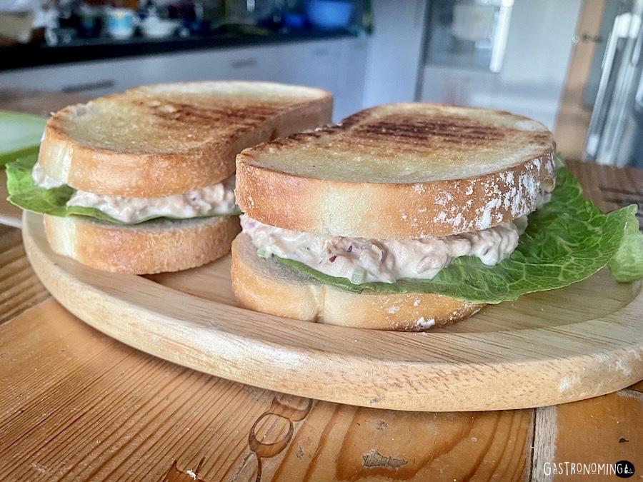 Pues eso, con todo el frescor de una ensaladilla de atún entre pan y pan, este delicioso sándwich, además de económico y fácil de hacer, podrás hacerlo en minutos y si lo planificas bien, podrás hacer cantidades industriales para todo un regimiento y alimentar a toda la tropa, pero para un poco, no haremos el clásico sándwich de ensaladilla de atún, o sea sí! Pero con un puntazo de sabor extra ya que haremos la mayonesa de la ensaladilla con el mismo aceite del atún para no perder ni una pizca de sabor.