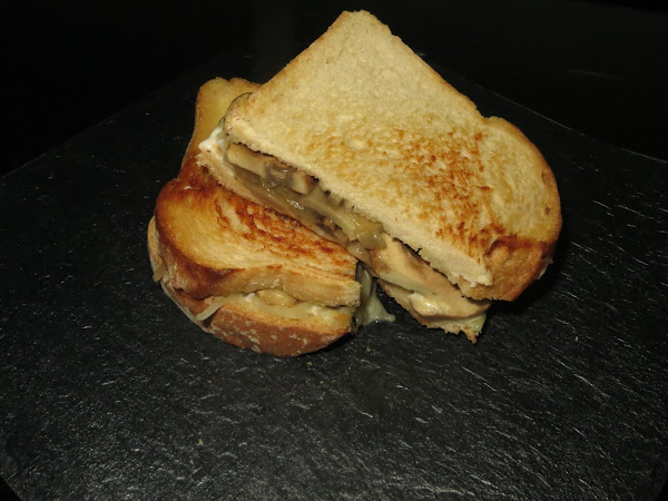 Ahora en una plancha o sartén amplia echamos un poco de mantequilla y colocamos dos rebanadas de pan de molde. Una de ellas la untamos con mayonesa y echamos un puñado de queso rallado, es mejor que sea gordo y que se funda bien. A continuación, añadimos la mitad de los champiñones con la cebolla y dejamos hasta que el queso se funda. Tapamos el sándwich y ya está listo para servir. Es importante comerlo caliente, ya veréis que delicia la combinación de sabores.