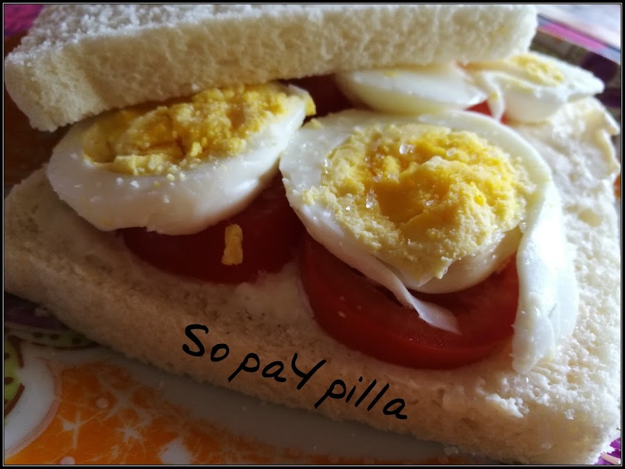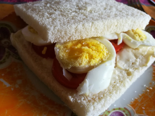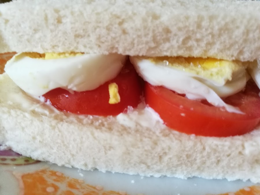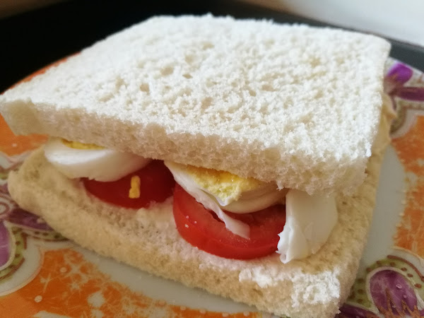 - Repartir en huevo en rodajas en los dos sandwitch, y hacer lo mismo con el tomate.