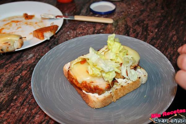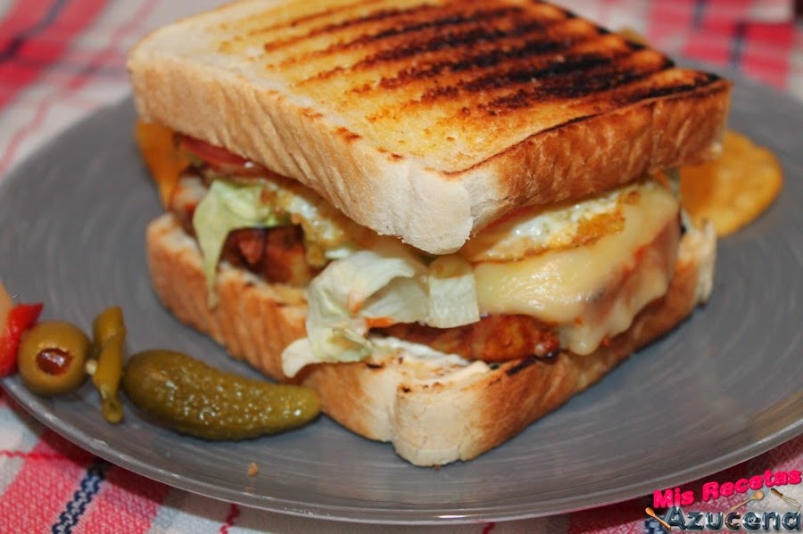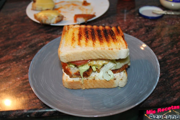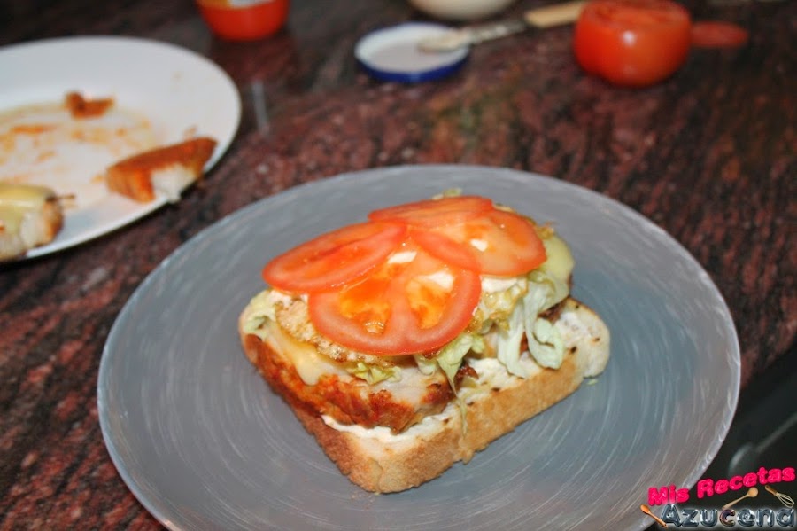 Ahora cogemos y untamos un poco de mayonesa sobre el pan para poner los trozos de carne, unas gotas de salsa brava, la lechuga, el huevo, el tomate y por ultimo tapamos con otra rebanada de pan.