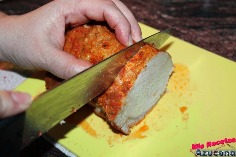 Por ultimo cogemos el pimentón y lo diluiremos en el vino blanco para poder añadirlo a con el resto de ingredientes, volvemos a remover todo bien, tapamos y dejamos que la carne macere durante 5 horas.