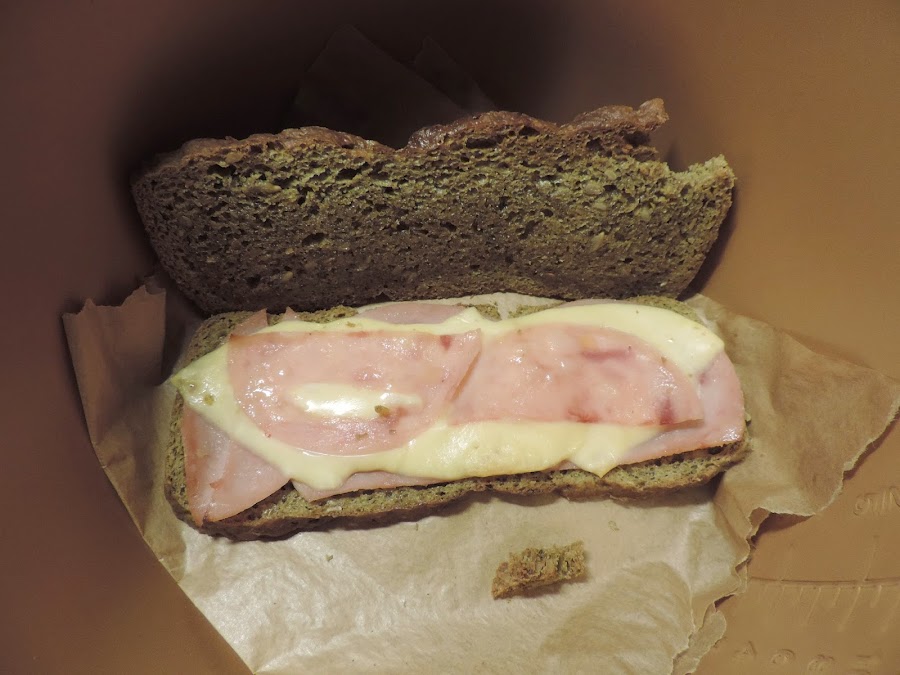 Ponemos papel de horno en la cubeta de la olla y metemos el sándwich.