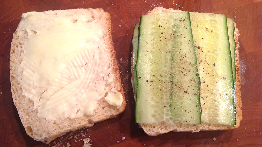 En nuestro país no somos muy de sandwich de pepino. Nos resulta extraña esta combinación de pan con mantequilla y pepino pero si lo pruebas te sorprenderá. Es muy fácil de preparar y la verdad es que engancha. Os animo a probarlo.