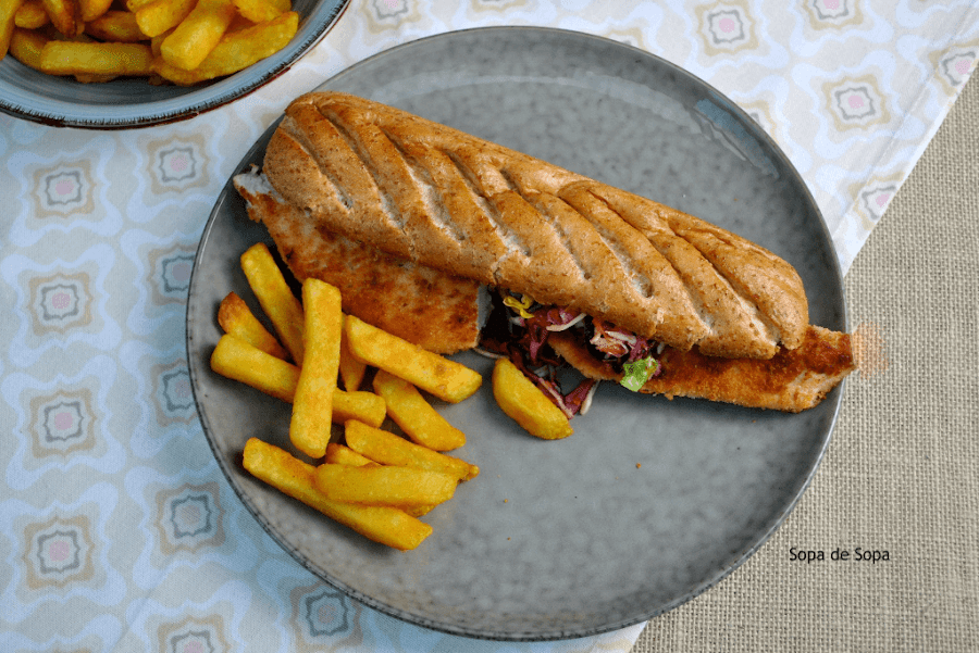 Abrirlos por la mitad y rellenar con algo de ensalada y un escalope de pollo. Cerrar y servir.