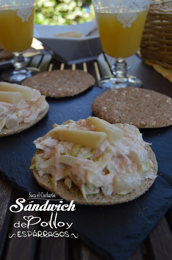 Preparamos nuestros sándwich con la mezcla y colocamos por encima las puntas de espárragos.