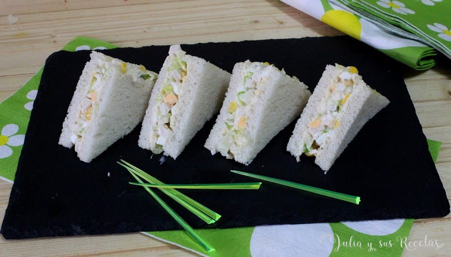 Lo mezclamos todo muy bien y rellenamos los sándwich. Los servimos partidos por la mitad acompañados de lo que queramos.