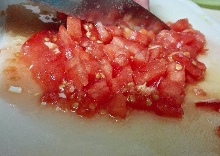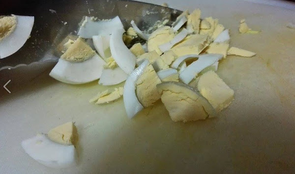 Ahora vamos a picar también pequeño los huevos.