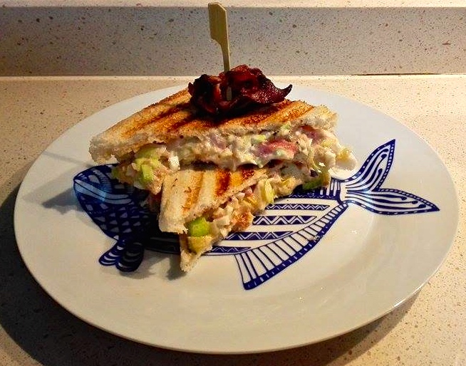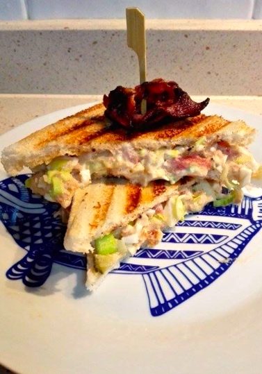 Tostamos el pan, doramos unas lonchitas de bacon, rellenamos el sándwich y listo!!!! Espero que lo hagáis porque de verdad os va a gustar mucho!!