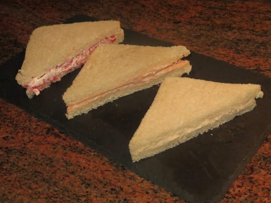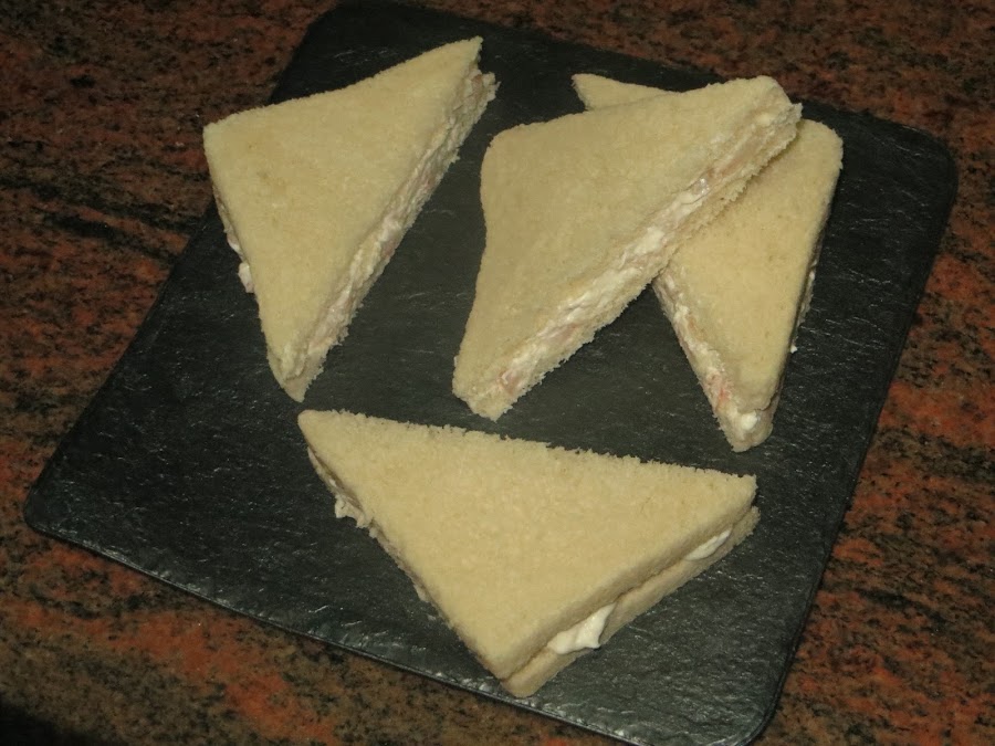 Picamos el pavo con la manzana con las gotas de limón y un poco de pimienta. Luego se echa la mayonesa y el kétchup para realizar una especie de salsa rosa y se unta en los sándwich. Con estas cantidades da para seis mitades.