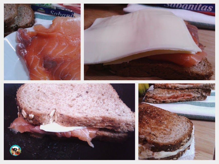 La falta de tiempo no es excusa para alimentarnos bien, tampoco lo es no saber cocinar...Lo que falta muchas veces son ideas para no comer siempre lo mismo, para estoy : Hoy os ofrezco este fantástico sandwich de salmón ahumado con queso de fundir. Con poco ingredientes, se hace en muy copo tiempo y esta lleno de sabor.Sándwich de salmón
