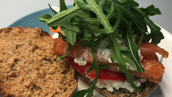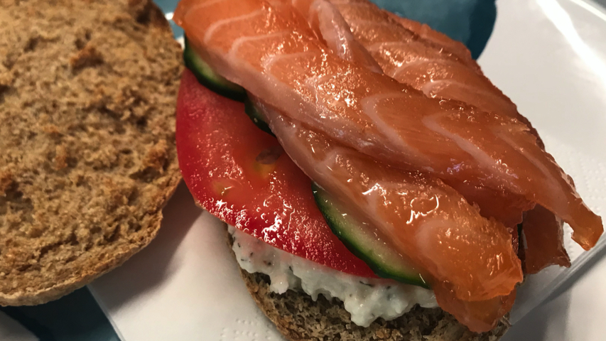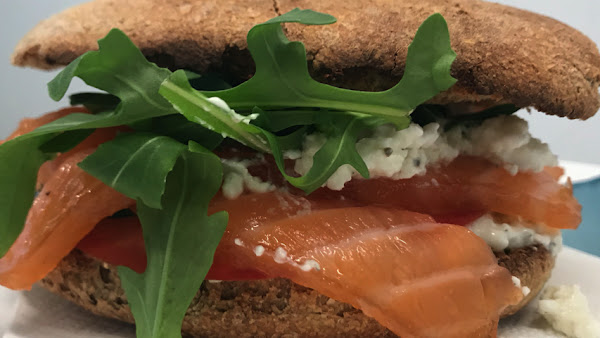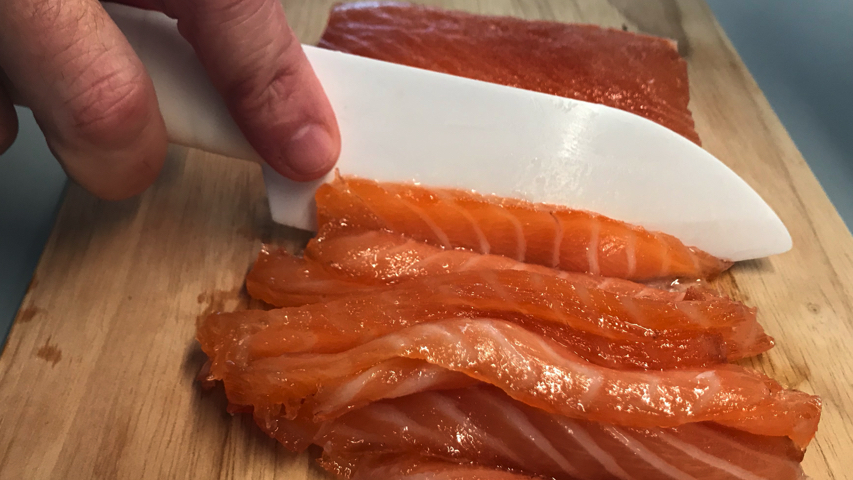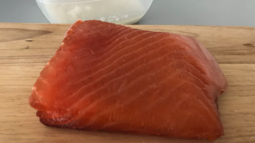 Sobre el salmón marinado pon un más mezcla de queso-yogur.