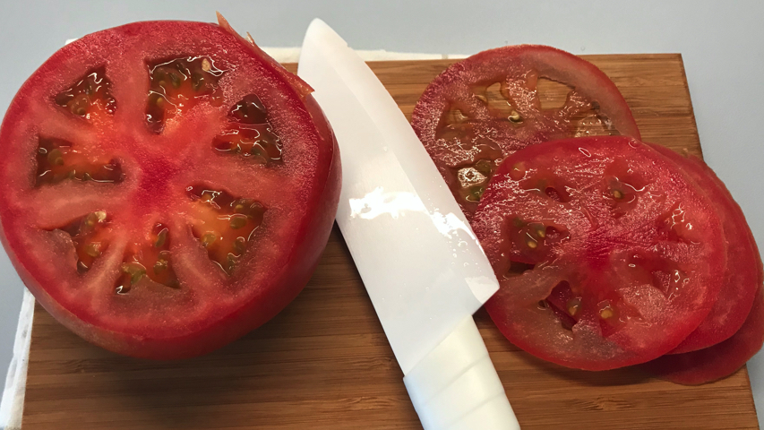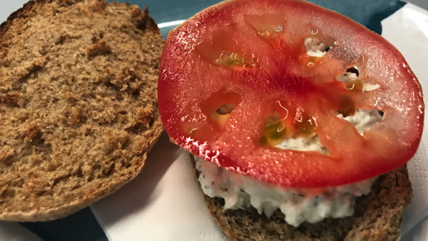 Pon una o dos rodajas de tomate encima -depende del tamaño-.