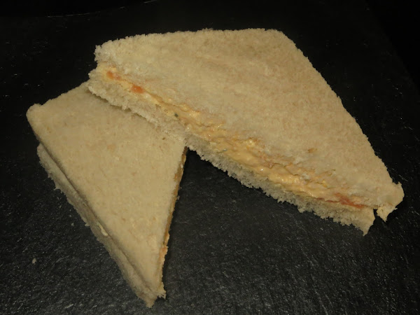Elaboración:Este sándwich se realiza con pan integral, pero yo lo hice con pan blanco normal sin bordes porque si no a mi peque no le gusta. Trituráis todos los ingredientes y los metéis dentro del pan, la mayonesa yo la hice casera, aunque podéis echar de bote, si queréis añadirle mayor sabor salmón podéis echarle más, aunque la verdad es que con estas proporciones se parece mucho.