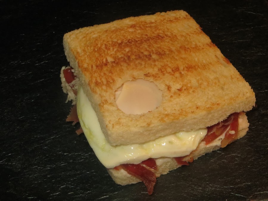 Lo primero que hacemos es tosta el pan lo podéis hacer en el horno o en una sartén. Una vez que tenéis tostado el pan por la zona blanca untáis el pan con una capa generosa de mayonesa, encima colocáis el tomate en rodajas finamente cortado y le echáis un poco de orégano por encima. Tostáis el jamón en la sartén y se lo ponéis encima, luego le echáis el queso rallado, freís el huevo en una sartén con aceite de oliva lo colocáis encima del pan. A la rebanada superior del sándwich podéis hacerle un pequeño agujero para que se vea la yema que queda más bonito. Lo servís y listo para comer, hacer bastantes porque seguro que se quedan con ganas de repetir.