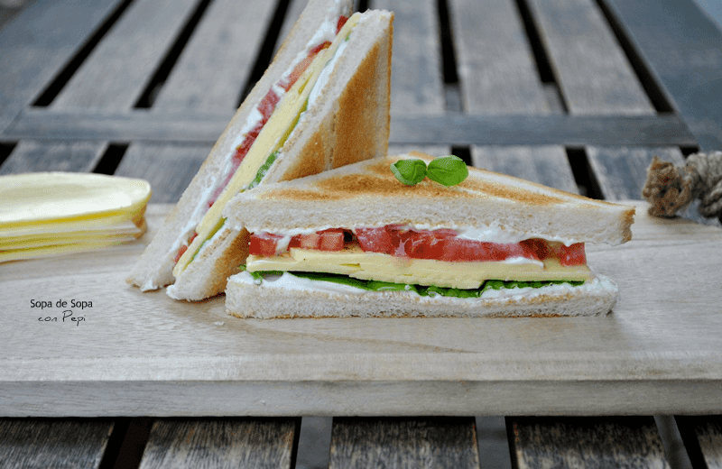 Cortar el tomate por la mitad, despepitar y cortarlo en rodajas. Cubrir el queso con rodajas de tomate y salpimentar. Cerrar con la otra mitad del pan y cortarlo en diagonal para servir.